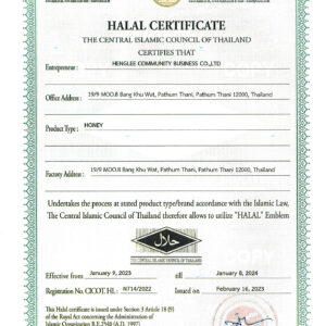• 100% Thai origin, Honey from Thai Organic Farm.